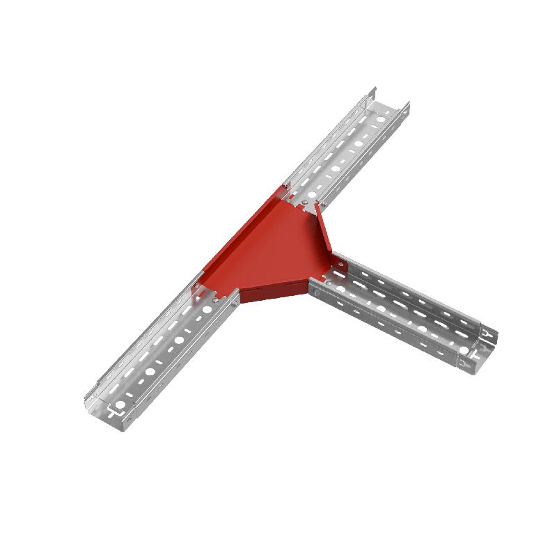 Т-отвод серии "PLUS" используется для создания ответвления трассы. Модификация изделия позволяет придерживаться заданных радиусов изгиба кабельной трассы при монтаже. Элемент рекомендовано применять c металлическим листовым лотком этой же серии шириной 100 мм и высотой борта 50 мм. Изделие оцинковано методом горячего погружения согласно ГОСТ 9.307-89 и используется для монтажа в помещениях с высокой влажностью и низкой загрязненностью, под открытым небом и в слабокоррозийной среде, в соответствии с ГОСТ 15150-69. Специальные соединительные лепестки на корпусе секции обеспечивают необходимую жёсткость конструкции стыкового узла и целостность трассы.