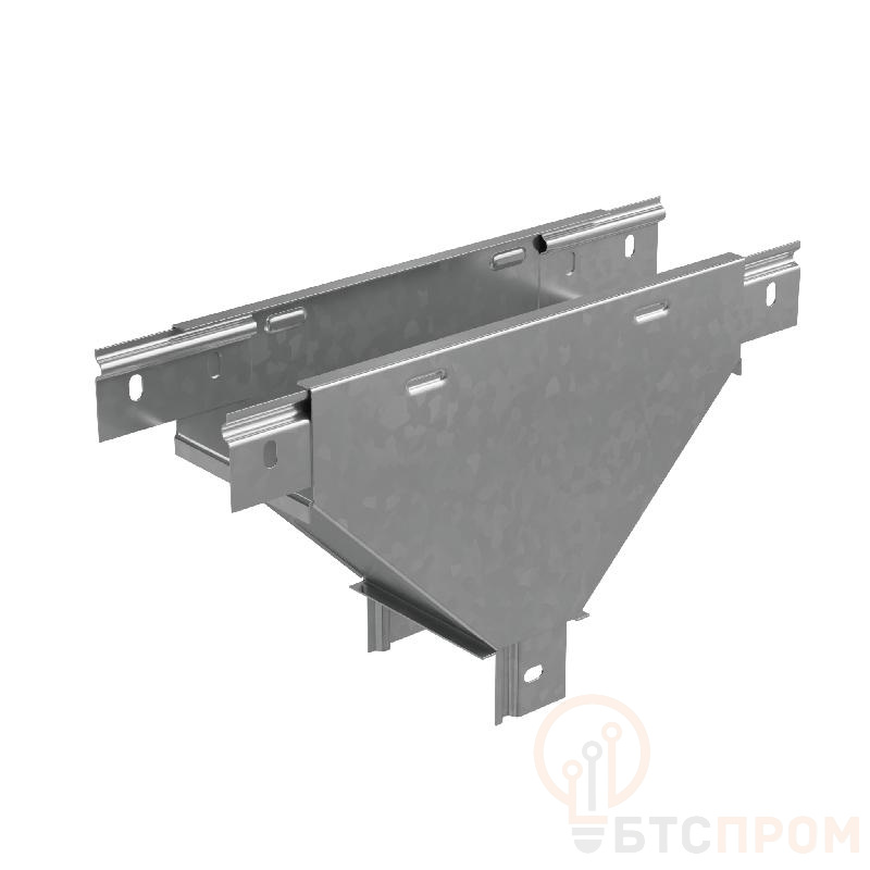 Т-отвод вертикальный вниз серии "PLUS" позволяет придерживаться заданных радиусов изгиба кабельной трассы при монтаже. Модификация изделия используется для отвода трассы вниз. Элемент рекомендовано применять c металлическим листовым лотком этой же серии шириной 300 мм и высотой борта 50 мм. Изделие выполнено из стали оцинкованной по методу Сендзимира. Предназначено для применения в местах предпочтительно с сухим климатом, внутри помещений и в слабоагрессивных средах, в соответствии с ГОСТ 15150-69. Т-отвод легко монтируется с помощью метизов. Специальные соединительные лепестки на корпусе секции обеспечивают необходимую жёсткость конструкции стыкового узла.