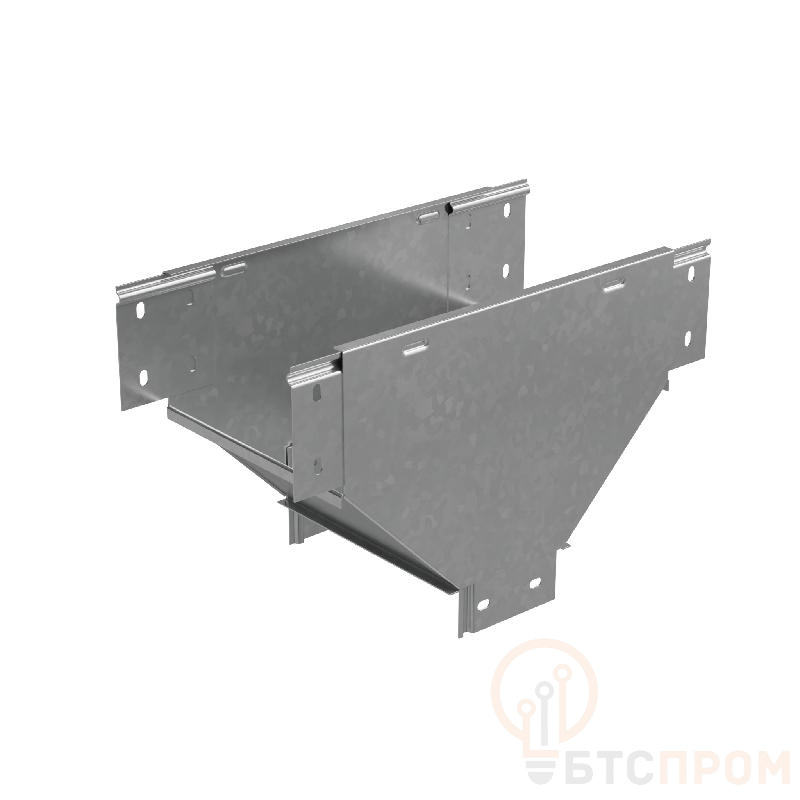 Т-отвод вертикальный вниз серии "PLUS" позволяет придерживаться заданных радиусов изгиба кабельной трассы при монтаже. Модификация изделия используется для отвода трассы вниз. Элемент рекомендовано применять c металлическим листовым лотком этой же серии шириной 400 мм и высотой борта 80 мм. Изделие выполнено из стали оцинкованной по методу Сендзимира. Предназначено для применения в местах предпочтительно с сухим климатом, внутри помещений и в слабоагрессивных средах, в соответствии с ГОСТ 15150-69. Т-отвод легко монтируется с помощью метизов. Специальные соединительные лепестки на корпусе секции обеспечивают необходимую жёсткость конструкции стыкового узла.