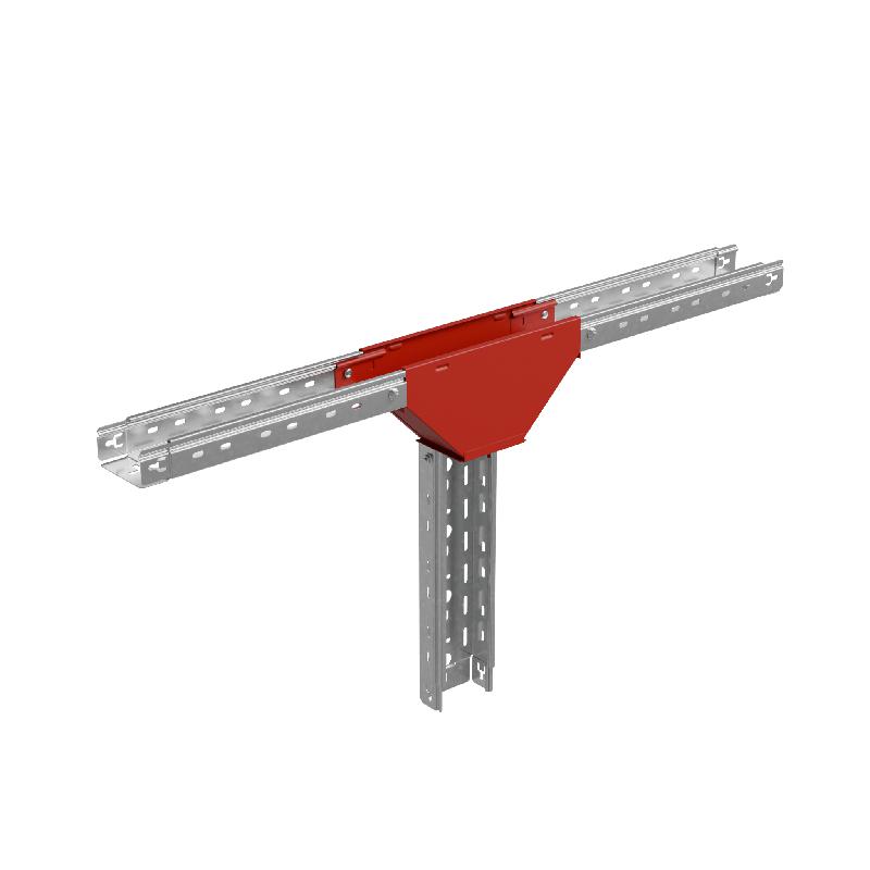 Т-отвод вертикальный вниз серии "PLUS" позволяет придерживаться заданных радиусов изгиба кабельной трассы при монтаже. Модификация изделия используется для отвода трассы вниз, при этом разворачивая открытую часть металлического лотка вокруг своей оси на 90 градусов. Элемент рекомендовано применять c металлическим листовым лотком этой же серии шириной 150 мм и высотой борта 50 мм. Изделие оцинковано методом горячего погружения согласно ГОСТ 9.307-89 и используется для монтажа в помещениях с высокой влажностью и низкой загрязненностью, под открытым небом и в слабокоррозийной среде, в соответствии с ГОСТ 15150-69. Т-отвод легко монтируется с помощью метизов. Специальные соединительные лепестки на корпусе секции обеспечивают необходимую жёсткость конструкции стыкового узла.