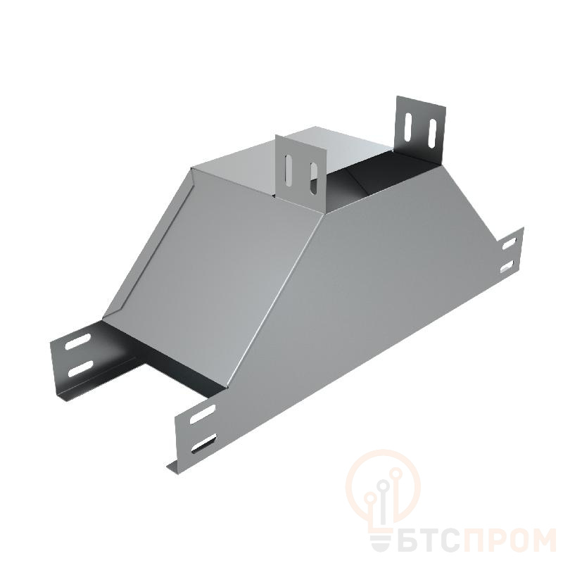 Т-отвод вертикальный БАЗОВОЙ СЕРИИ позволяет придерживаться заданных радиусов изгиба кабельной трассы при монтаже. Модификация изделия используется для отвода трассы вверх, при этом разворачивая открытую часть металлического лотка вокруг своей оси на 90 градусов. Элемент рекомендовано применять c металлическим листовым лотком этой же серии шириной 150 мм и высотой борта 50 мм. Изделие выполнено из стали оцинкованной по методу Сендзимира. Предназначено для применения в местах предпочтительно с сухим климатом, внутри помещений и в слабоагрессивных средах, в соответствии с ГОСТ 15150-69. Т-отвод легко монтируется с помощью метизов. Специальные соединительные лепестки на корпусе секции обеспечивают необходимую жёсткость конструкции стыкового узла и целостность трассы. Для дополнительной защиты элемента кабельной трассы от механических повреждений используйте крышку для т-отвода.