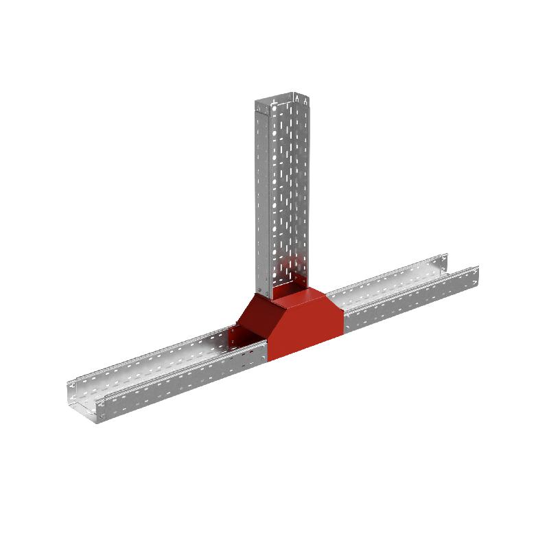Для обеспечения заданных радиусов изгиба кабельной трассы при монтаже используется Т-отвод вертикальный вверх серии "PLUS". Конструкция элемента применима для отвода трассы вверх, при этом разворачивая открытую часть металлического лотка вокруг своей оси на 90 градусов. Элемент рекомендовано использовать c металлическим листовым лотком этой же серии шириной 150 мм и высотой борта 80 мм. Изделие оцинковано методом горячего погружения согласно ГОСТ 9.307-89 и используется для монтажа в помещениях с высокой влажностью и низкой загрязненностью, под открытым небом и в слабокоррозийной среде, в соответствии с ГОСТ 15150-69. Т-отвод легко монтируется с помощью метизов. Специальные соединительные лепестки на корпусе секции обеспечивают необходимую жёсткость конструкции стыкового узла и целостность трассы.