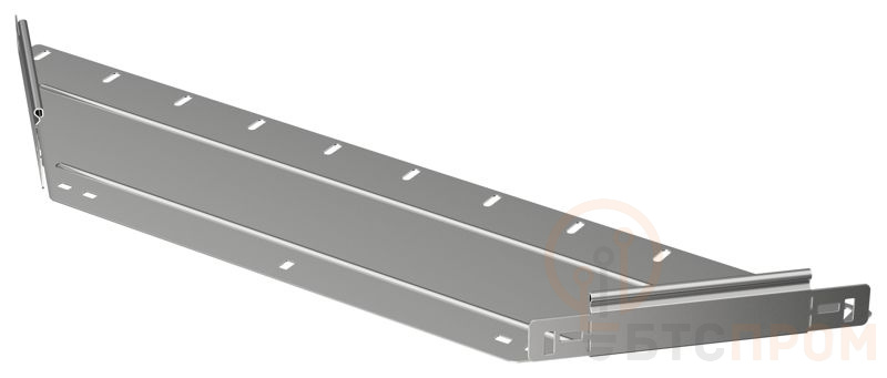 Отвод Т-образный горизонтальный предназначен для организации Т-образного или X-образного отвода кабельной трассы в горизонтальной плоскости. Стыковка аксессуара с лотком осуществляется за счёт телескопического соединителя. Подходит для всех типов листовых лотков серии ESCA. Крышка на аксессуар заказывается отдельно. Аксессуар изготовлен из стали оцинкованной методом Сендзимира (защитный слой цинка не менее 5-10 мкм).