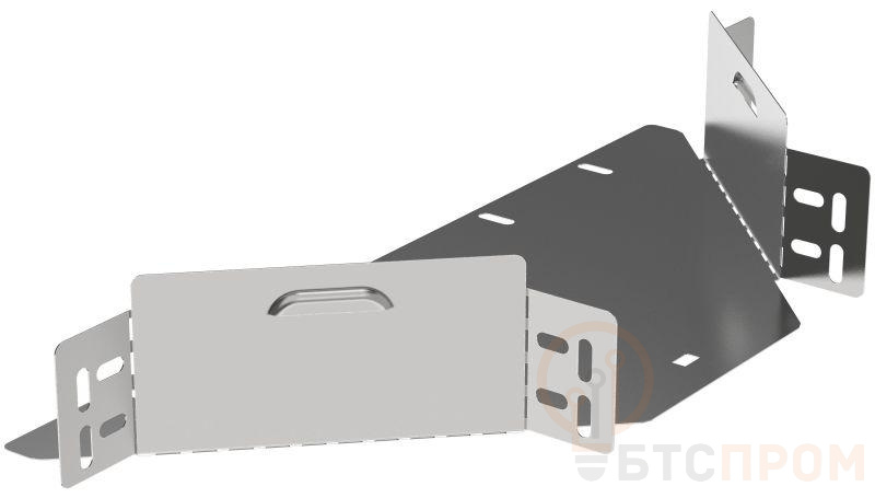 Отвод Т-образный горизонтальный предназначен для организации Т-образного или X-образного отвода кабельной трассы в горизонтальной плоскости. Аксессуар поставляется в плоском виде, имеет направляющую перфорацию для сгиба и сборки изделия перед установкой. Стыковка аксессуара с лотком осуществляется за счёт телескопического соединителя. Подходит для всех типов листовых лотков серии ESCA. Крышка на аксессуар заказывается отдельно. Аксессуар изготовлен из стали оцинкованной методом Сендзимира (защитный слой цинка не менее 5-10 мкм).