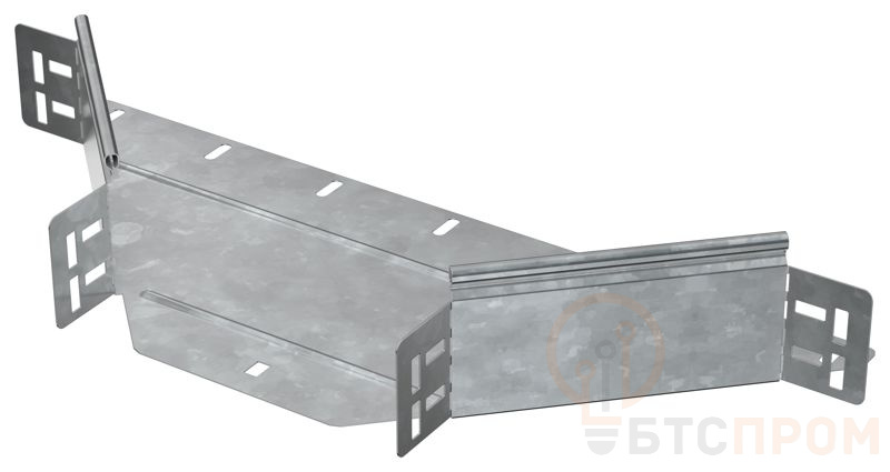 Отвод Т-образный горизонтальный предназначен для организации Т-образного или X-образного отвода кабельной трассы в горизонтальной плоскости. Стыковка аксессуара с лотком осуществляется за счёт телескопического соединителя. Подходит для всех типов листовых лотков серии ESCA. Крышка на аксессуар заказывается отдельно. Аксессуар изготовлен из стали оцинкованной методом горячего погружения (защитный слой цинка не менее 55 мкм).