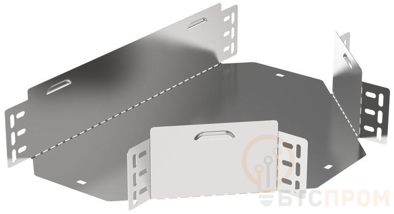 Разветвитель Т-образный горизонтальный предназначен для организации Т-образного ответвления кабельной трассы в горизонтальной плоскости. Аксессуар поставляется в плоском виде, имеет направляющую перфорацию для сгиба и сборки изделия перед установкой. Стыковка аксессуара с лотком осуществляется за счёт телескопического соединителя. Подходит для всех типов листовых лотков серии ESCA. Крышка на аксессуар заказывается отдельно. Аксессуар изготовлен из стали оцинкованной методом Сендзимира (защитный слой цинка не менее 5-10 мкм).