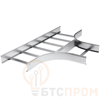 Ответвители – это аксессуары, облегчающие построение кабельных трасс сложной геометрии, с поворотами и изгибами. Они позволяют создавать ответвления кабельной трассы на основен системы лестничных лотков "L5 Combitech". Ответвитель имеет Т-образную форму и применяется для организации ответвлений в вертикальной плоскости. Его конструктив обеспечивает плавный поворот и предупреждает повреждение кабеля при прокладке. При применении вместе с крышкой обеспечивается высокая степень пыле- и влагозащиты кабеля и простой доступ к кабелю, т.к. крышку можно снять при необходимости. Исполнение аксессуара - "Сталь, оцинкованная по методу Сендзимира". Т-образный ответвитель R-300 предназначен для лотков высотой 50 мм и шириной 400 мм.