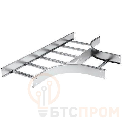 Т-ответвитель предназначен для монтажа отводов трасс в горизонтальной плоскости. Поставляется в комплекте с метизами и соединительными пластинами (LG5000, CM010620, CM110600, CM220600 в соответствующем аксессуару исполнении). Исполнение – "сталь, оцинкованная по методу Сендзимира". Аксессуар применим с лотком шириной 500 мм и высотой борта 50 мм. Имеет радиус скругления 300 мм.