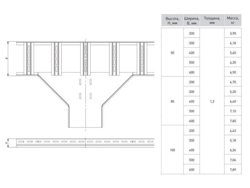 Высота кабельных лотков лестничного типа