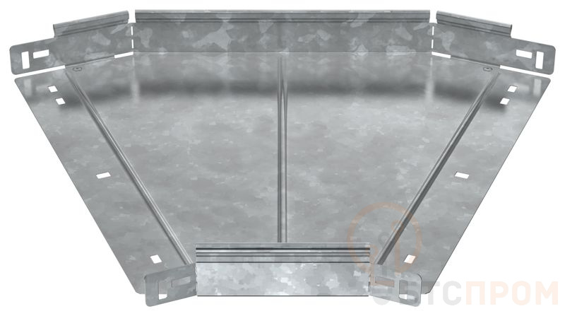 Изготовлен из качественной стали толщиной 0.8 мм с цинковым покрытием HDZ (горячее цинкование), что гарантирует высокую механическую прочность и исключительную коррозионную стойкость даже в агрессивных средах. Совместим с лотком шириной 50 мм, длина стороны угла составляет 400 мм. Монтаж осуществляется легко и быстро с помощью стандартных крепежных элементов.