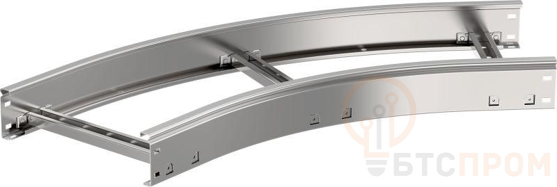 Применяется для организации поворота кабельной трассы на 45° в горизонтальной плоскости с радиусом поворота 600 мм. Изготавливается из рулонной холоднокатанной стали предварительно оцинкованной по методу Сендзимира (ГОСТ 14918-2020).