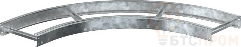 Применяется для организации поворота кабельной трассы на 90° в горизонтальной плоскости с радиусом поворота 600 мм. Изготавливается из рулонной холоднокатанной стали с последующим нанесением защитного цинкового покрытия методом погружения в расплав (ГОСТ 9.307-89).