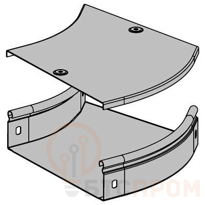 Аксессуары системы "S5 Combitech" позволяют строить кабельные трассы сложного конструктива, с многочисленными поворотами и углами. Один из широко используемых аксессуаров – угол СРО горизонтальный. Он применяется для поворота кабельной трассы в горизонтальной плоскости на определенный угол. Данный угол СРО необходим для осуществления поворота на 45°. Плавный изгиб аксессуара предупреждает повреждение кабеля при прокладке. При использовании вместе с крышкой достигается высокий уровень пыле- и влагозащиты – IP 44. Исполнение – "сталь, оцинкованная по методу Сендзимира". Толщина металла - 0,8 мм, высота – 50 мм, ширина – 50 мм, внутренний радиус – 150 мм.
