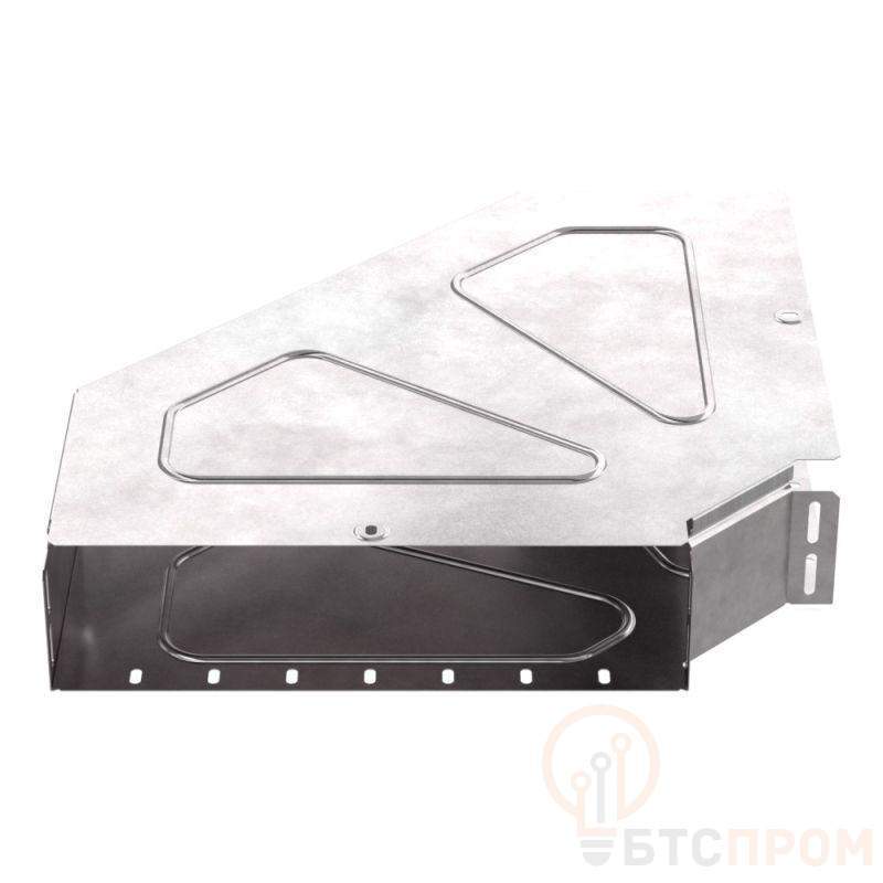 Аксессуары изготовленные из стали с защитным покрытием по методу Сендзимира – это изделия, на которых защитное цинковое покрытие было нанесено на листовую сталь перед изготовлением. Толщина защитного покрытия варьируется от 10 до 22мкм. Климатическое исполнение изделий УХЛ2, что предусматривают эксплуатацию в помещении и под навесом, при температуре эксплуатации от -80 до +150°С. Угол горизонтальный 90 градусов предназначен для поворота кабельных трасс в горизонтальном направлении на 90 градусов, для перфорированных и глухих лотков. В комплект входит крышка.