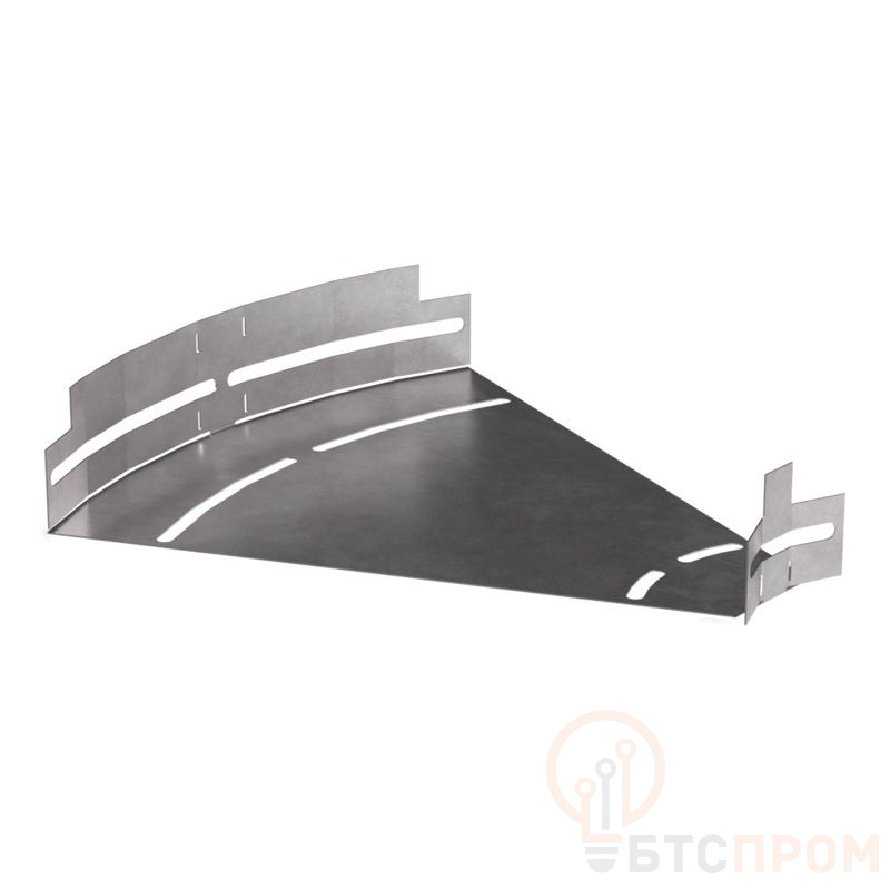 Аксессуары изготовленные из стали с защитным покрытием по методу Сендзимира – это изделия, на которых защитное цинковое покрытие было нанесено на листовую сталь перед изготовлением. Толщина защитного покрытия варьируется от 10 до 22мкм. Климатическое исполнение изделий УХЛ2, что предусматривают эксплуатацию в помещении и под навесом, при температуре эксплуатации от -80 до +150°С. Обеспечивает плавный переход горизонтальной кабеленесущей линии между лотками металлическими в диапазоне от 0 до 45 градусов.