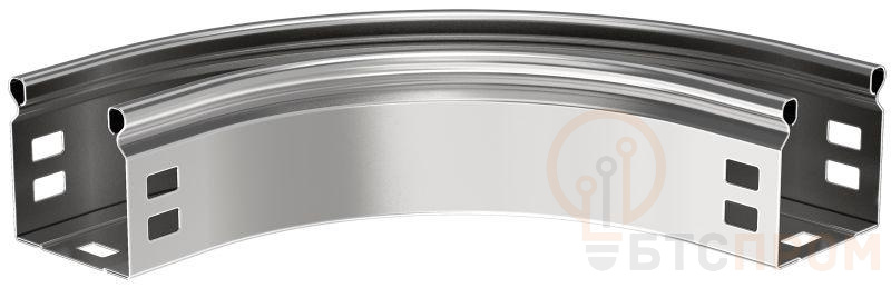 Поворот на 90° плавный предназначен для организации горизонтального поворота кабельной трассы на 90°. Крышка аксессуара в комплект не входит. Аксессуар изготовлен из стали горячего цинкования методом Сендзимира (защитный слой цинка не менее 10 мкм).