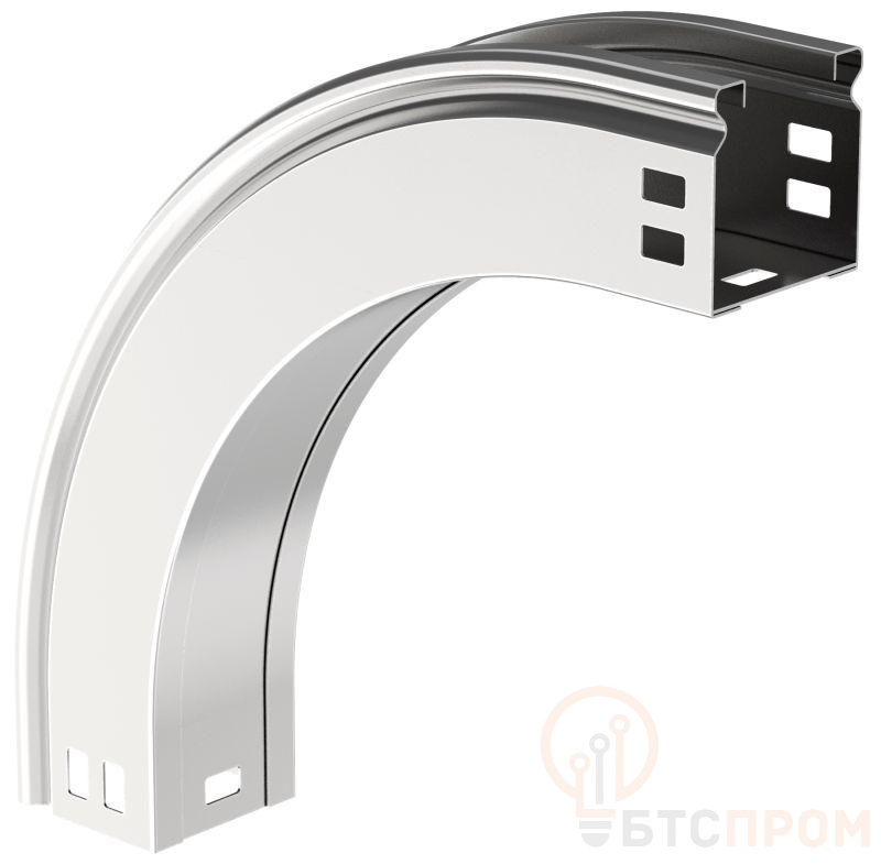 Поворот на 90° вертикальный внешний плавный предназначен для организации вертикального внешнего поворота кабельной трассы на 90°. Крышка аксессуара в комплект не входит. Аксессуар изготовлен из стали горячего цинкования методом Сендзимира (защитный слой цинка не менее 10 мкм).
