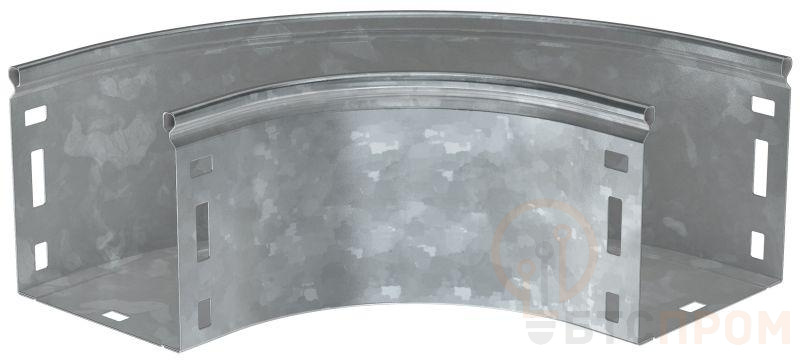 Поворот на 90° плавный предназначен для организации горизонтального поворота кабельной трассы на 90°. Крышка аксессуара в комплект не входит. Аксессуар изготовлен из стали с цинковым покрытием, нанесенным погружением изделий в расплав цинка (защитный слой цинка не менее 55 мкм).