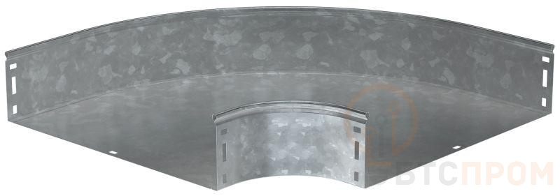 Поворот на 90° плавный предназначен для организации горизонтального поворота кабельной трассы на 90°. Крышка аксессуара в комплект не входит. Аксессуар изготовлен из стали с цинковым покрытием, нанесенным погружением изделий в расплав цинка (защитный слой цинка не менее 55 мкм).