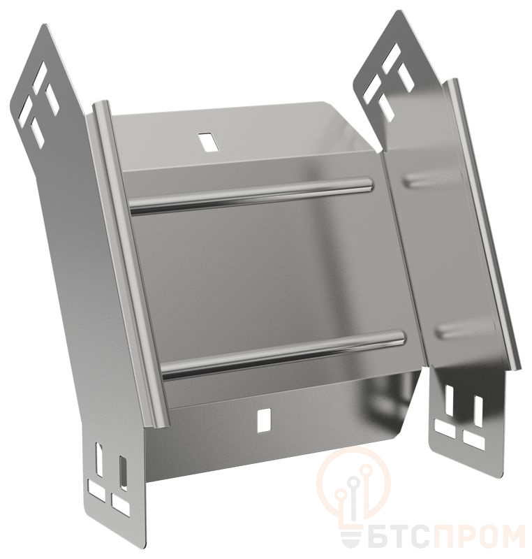 Данный уголок серии ES5 имеет размеры 100х200 мм, позволяя выполнять плавный переход между лотками разной высоты под стандартным углом в 45 градусов. Конструкция обеспечивает аккуратную и безопасную укладку кабелей, защищая их от перегибов и повреждений на поворотах трассы.