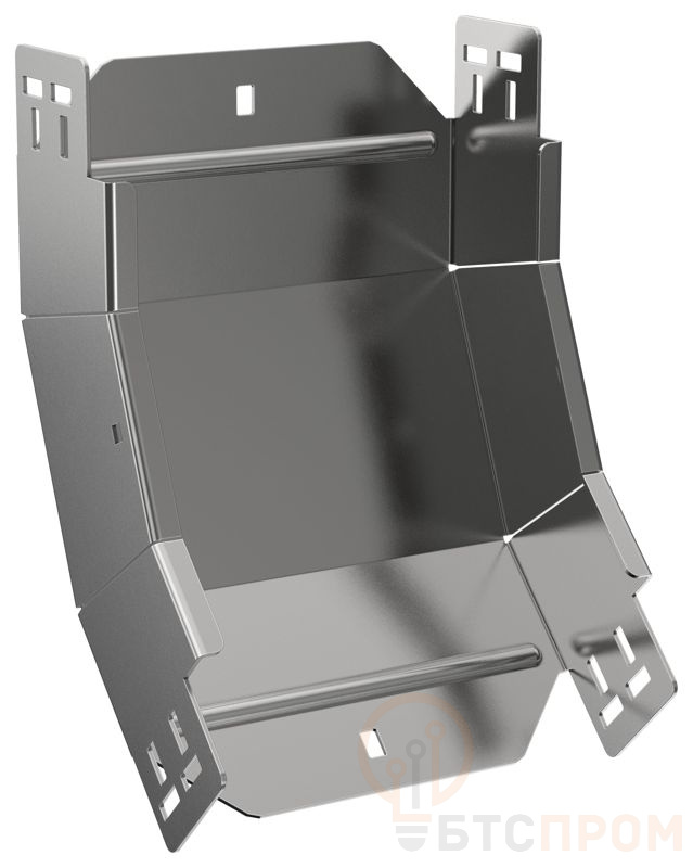 Поворот вертикальный внутренний на 45° предназначен для организации поворота кабельной трассы в вертикальной плоскости. Стыковка аксессуара с лотком осуществляется за счёт телескопического соединителя. Подходит для всех типов листовых лотков серии ESCA. Крышка на аксессуар заказывается отдельно. Аксессуар изготовлен из стали оцинкованной методом Сендзимира (защитный слой цинка не менее 5-10 мкм).