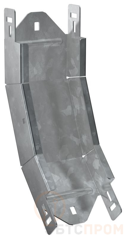 Поворот вертикальный внутренний на 45° предназначен для организации поворота кабельной трассы в вертикальной плоскости. Стыковка аксессуара с лотком осуществляется за счёт телескопического соединителя. Подходит для всех типов листовых лотков серии ESCA. Крышка на аксессуар заказывается отдельно. Аксессуар изготовлен из стали оцинкованной методом горячего погружения (защитный слой цинка не менее 55 мкм).