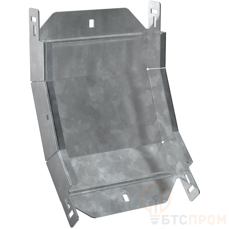 Поворот вертикальный внутренний на 45° предназначен для организации поворота кабельной трассы в вертикальной плоскости. Стыковка аксессуара с лотком осуществляется за счёт телескопического соединителя. Подходит для всех типов листовых лотков серии ESCA. Крышка на аксессуар заказывается отдельно. Аксессуар изготовлен из стали оцинкованной методом горячего погружения (защитный слой цинка не менее 55 мкм).