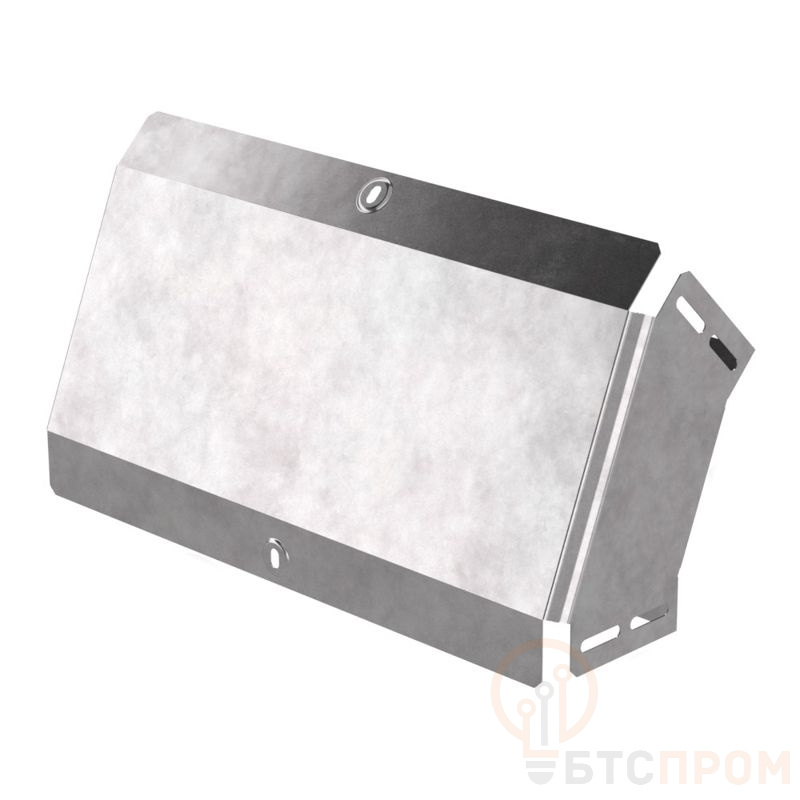 Аксессуары изготовленные из стали с защитным покрытием по методу Сендзимира – это изделия, на которых защитное цинковое покрытие было нанесено на листовую сталь перед изготовлением. Толщина защитного покрытия варьируется от 10 до 22мкм. Климатическое исполнение изделий УХЛ2, что предусматривают эксплуатацию в помещении и под навесом, при температуре эксплуатации от -80 до +150°С. Угол вертикальный внешний 45 градусов предназначен для спуска кабельных трасс на 45 градусов, для перфорированных и глухих лотков. В комплект входит крышка.