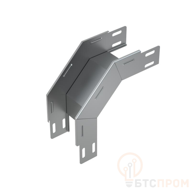 Для направления кабельной трассы вниз используется угол внешний вертикальный 45 градусов. Плавный изгиб предотвращает повреждение кабельной трассы при её прокладке. Элемент БАЗОВОЙ СЕРИИ подходит для соединения c металлическим листовым лотком этой же серии шириной 150 мм и высотой борта 50 мм. Изделие выполнено из стали оцинкованной по методу Сендзимира. Предназначено для применения в местах предпочтительно с сухим климатом, внутри помещений и в слабоагрессивных средах, в соответствии с ГОСТ 15150-69. Специальные соединительные лепестки на корпусе секции обеспечивают необходимую жёсткость конструкции стыкового узла и целостность трассы. Для дополнительной защиты элемента кабельной трассы от механических повреждений, попадания пыли и мусора, используйте крышку.