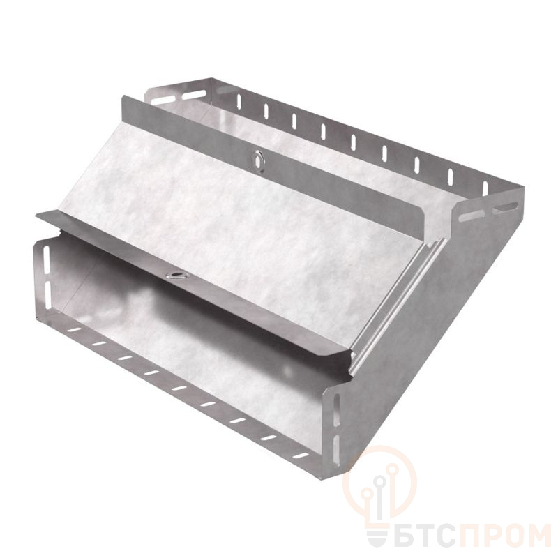 Аксессуары изготовленные из стали с защитным покрытием по методу Сендзимира – это изделия, на которых защитное цинковое покрытие было нанесено на листовую сталь перед изготовлением. Толщина защитного покрытия варьируется от 10 до 22мкм. Климатическое исполнение изделий УХЛ2, что предусматривают эксплуатацию в помещении и под навесом, при температуре эксплуатации от -80 до +150°С. Угол вертикальный внутренний 90 градусов предназначен для подъема кабельных трасс на 90 градусов, для перфорированных и глухих лотков. В комплект входит крышка.
