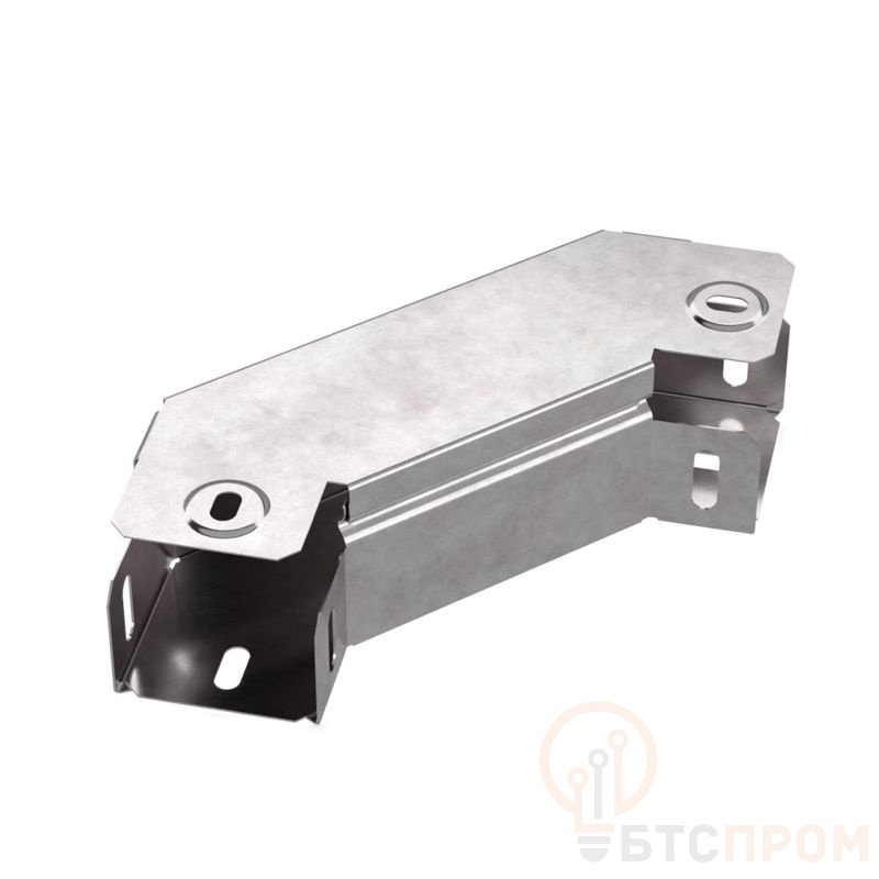 Аксессуары изготовленные из стали с защитным покрытием по методу Сендзимира – это изделия, на которых защитное цинковое покрытие было нанесено на листовую сталь перед изготовлением. Толщина защитного покрытия варьируется от 10 до 22мкм. Климатическое исполнение изделий УХЛ2, что предусматривают эксплуатацию в помещении и под навесом, при температуре эксплуатации от -80 до +150°С. Угол горизонтальный 90 градусов предназначен для поворота кабельных трасс в горизонтальном направлении на 90 градусов, для перфорированных и глухих лотков. В комплект входит крышка.