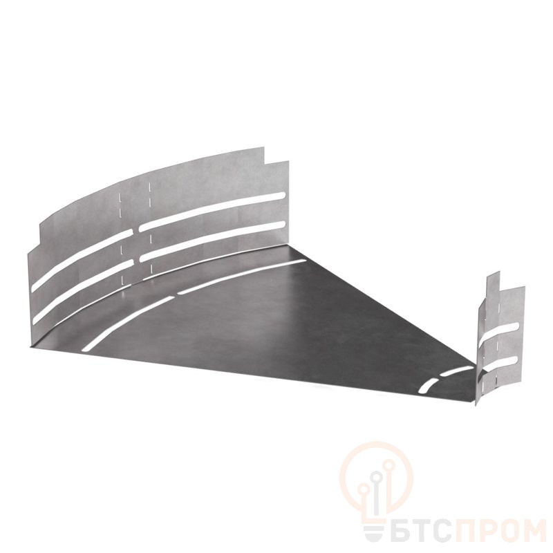 Аксессуары изготовленные из стали с защитным покрытием по методу Сендзимира – это изделия, на которых защитное цинковое покрытие было нанесено на листовую сталь перед изготовлением. Толщина защитного покрытия варьируется от 10 до 22мкм. Климатическое исполнение изделий УХЛ2, что предусматривают эксплуатацию в помещении и под навесом, при температуре эксплуатации от -80 до +150°С. Обеспечивает плавный переход горизонтальной кабеленесущей линии между лотками металлическими в диапазоне от 0 до 45 градусов.