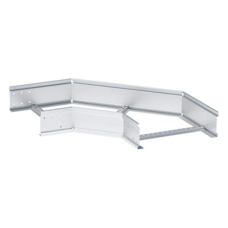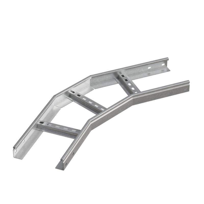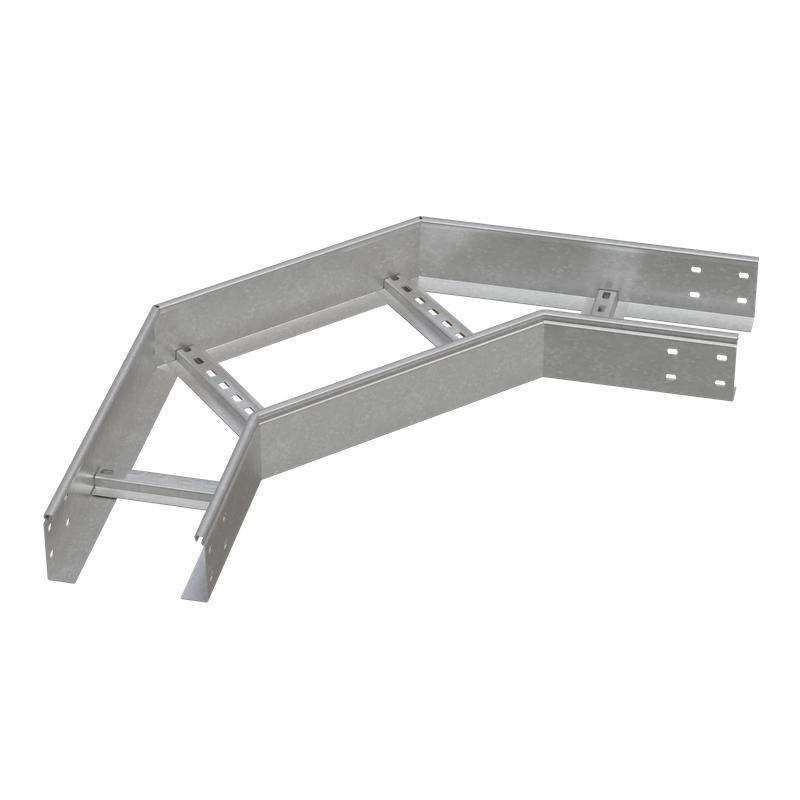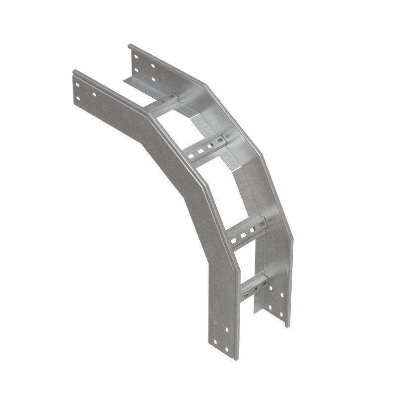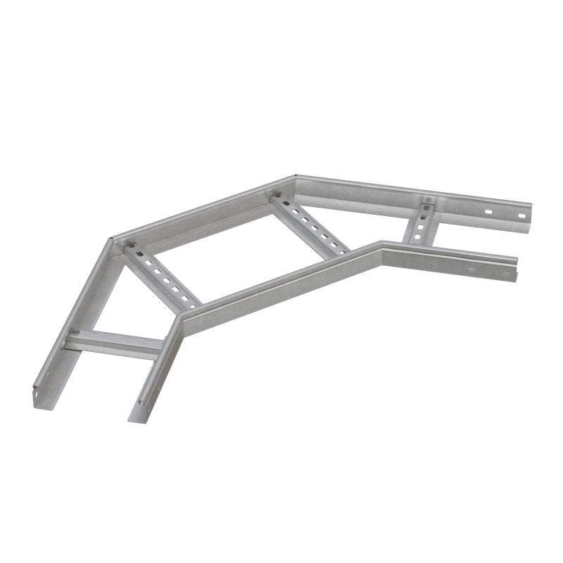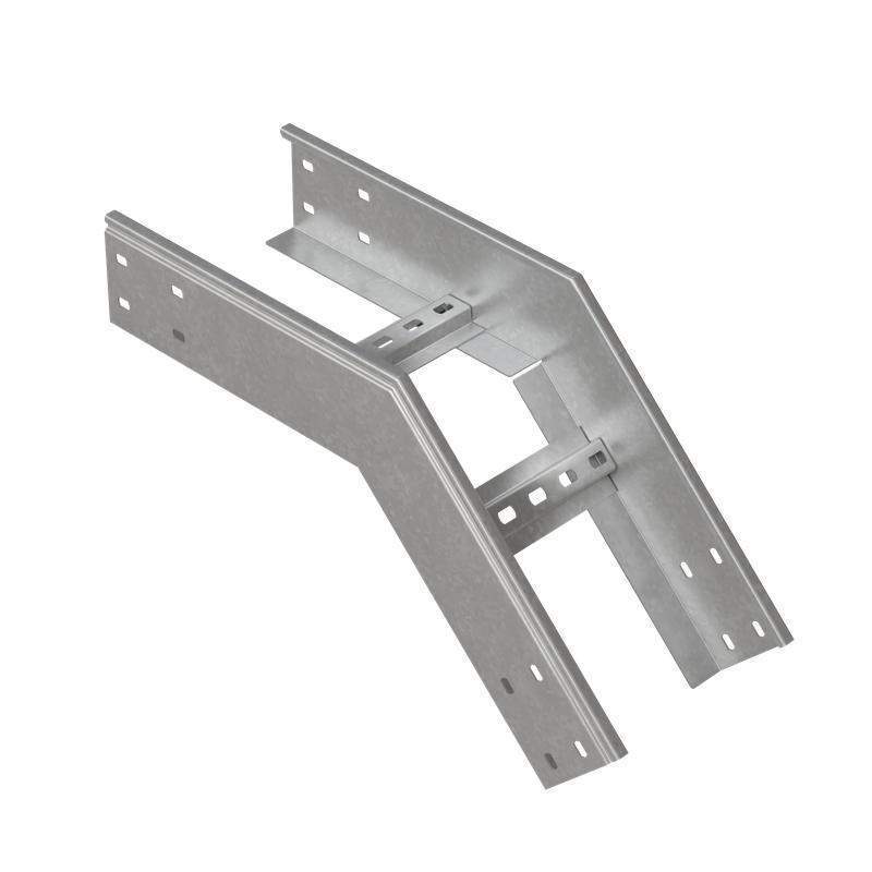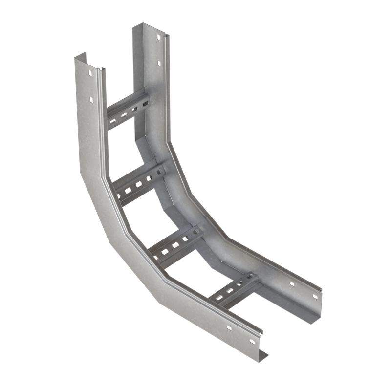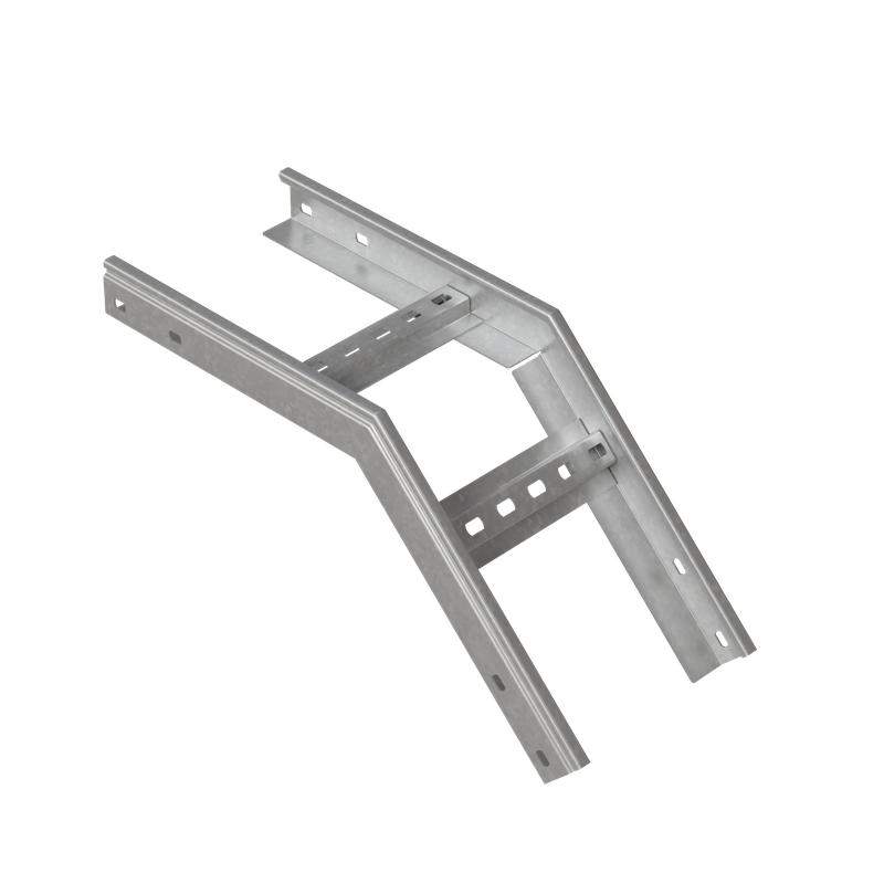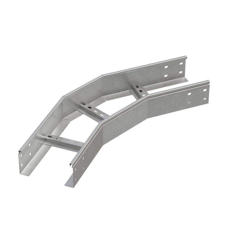 Горизонтальный лестничный угол 45 градусов позволяет выполнить поворот силовых и слаботочных линий в горизонтальной плоскости. Секция подходит для соединения c металлическим лестничным лотком шириной 100 мм и высотой борта 50 мм. Элемент выполнен из нержавеющей стали марки AISI304 – материала устойчивого к коррозии, высоким температурам и агрессивным средам. Используется на предприятиях пищевой и медицинской промышленности, химических заводах, в морских и прибрежных зонах, в соответствии с ГОСТ 15150-69. Соединение между секциями происходит с использованием подходящих крепежных элементов. Для дополнительной защиты элемента кабельной трассы от механических повреждений, попадания пыли и мусора, используйте крышку.