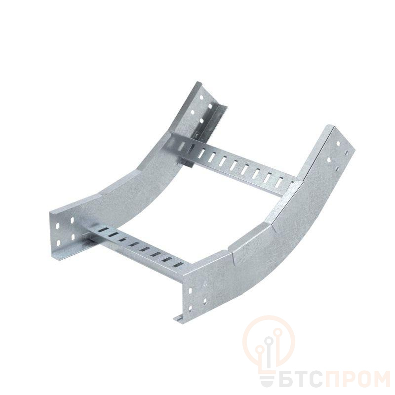 Угол вертикальный внутренний предназначен для организации поворота трассы на основе лестничных лотков с высотой борта 100 мм и шириной основания 200 мм вверх на 45 градусов. Радиус поворота угла - 300 мм. Аксессуар поставляется в комплекте с крепежными элементами и соединительными пластинами, необходимыми для монтажа. Данное изделие представлено в исполнении "Сталь, оцинкованная по методу Сендзимира". Толщина лонжерона изделия – 1,5 мм, а толщина поперечины – 1,0 мм.