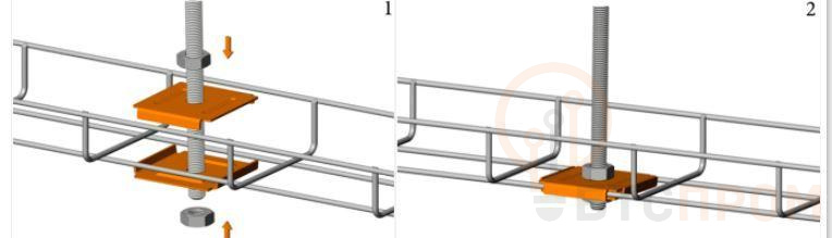 Фиксатор для подвеса проволочного лотка используется для подвеса проволочного лотка на шпильку (М6, М8, М10).