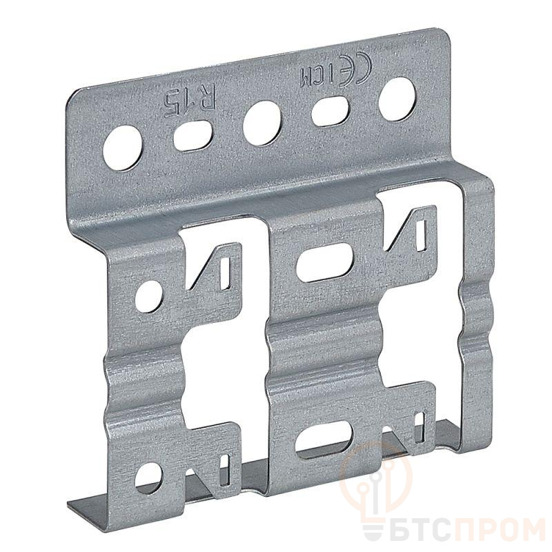 Кронштейн R15 GS CABLOFIL CM586170 – модульный элемент для крепления кабельнесущих конструкций. Кронштейн П-образной формы с отверстиями. Высота 15 мм. Размер: 98х30х100. Выдерживает нагрузку 100 daN. Защищен от коррозии холодным оцинкованием (по методу Сендзимира). Поставщик: CABLOFIL (ГК Legrand).