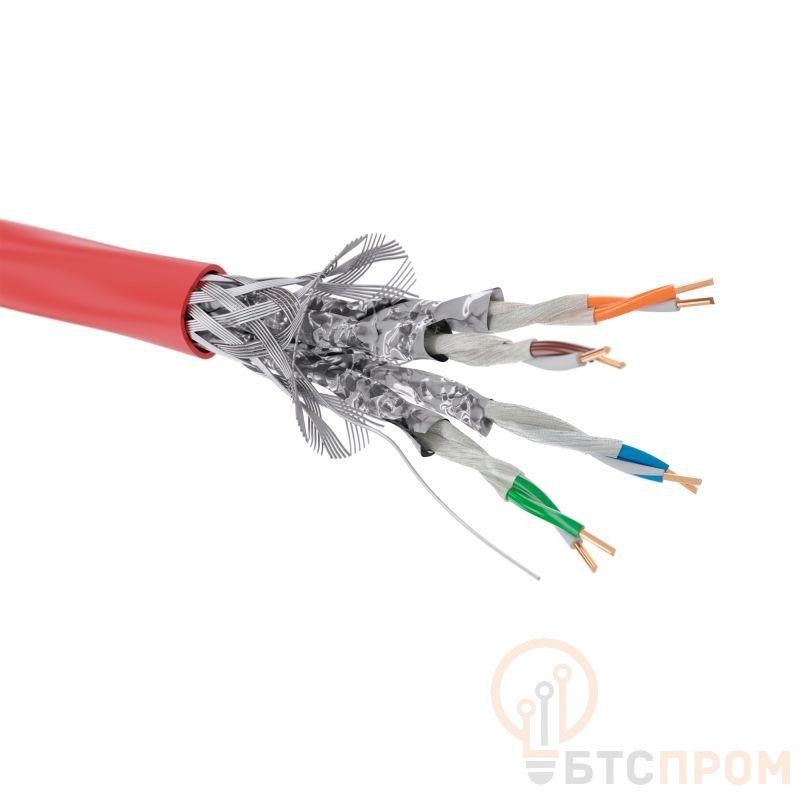 Экранированные кабели c конструкцией S/FTP категории 6A в исполнении нг(А)-FRHF не распространяют горение при групповой прокладке при испытании по ГОСТ IEC 60331-23 с объемом горючей массы неметаллических элементов конструкции 7,0 л/м (класс А). Безгалогенные кабели обладают низкой дымообразующей способностью и не имеют в продуктах горения корозионноактивных газов. Снижение светопропускания в режиме горения и тления не превышает 40% при испытании по ГОСТ IEC 61034-2. Коррозионная активность газов, которые выделяются при активном горении материалов, соответствует показателю ПКА 1 при испытаниях по ГОСТ IEC 60754-1, ГОСТ IEC 60754-2. Предел огнестойкости соответствует показателю ПО 1 при испытании по ГОСТ IEC 60331-23. Это значит, что испытание проводится под воздействием огня, при температуре 750°C и в течение 180 минут отсутствует короткое замыкание, и испытуемый образец не теряет своих свойств. Класс пожарной опасности П1б.1.1.2.1.