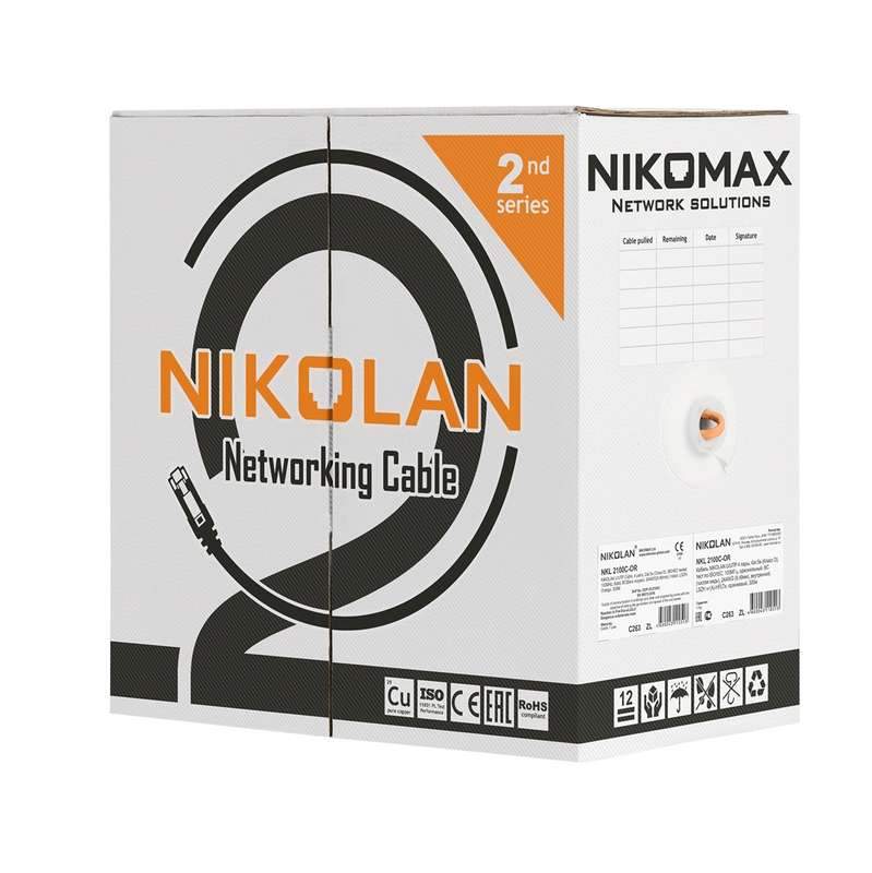 Кабель U/UTP кат.6 (класс E) 4 пары 24 AWG (0.53мм) тест по ISO/IEC 250МГц ОЖ BC чистая медь внутр. LSZH нг(А)-HFLTx оранж. (уп.305м) NIKOLAN NKL 2140C-OR