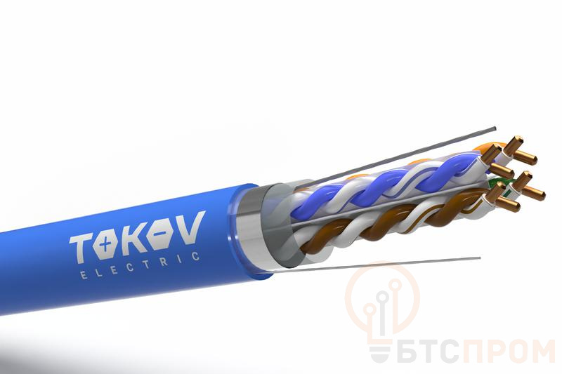 Кабель витая пара TOKOV PRO категории 6 предназначен для высокоскоростных структурированных кабельных систем. Конструкция кабеля F/UTP включает четыре пары проводников из медной проволоки калибра 23AWG (0.57 мм) с индивидуальной полиэтиленовой изоляцией, скрученных для минимизации помех. Общий экран из алюминиевой фольги (Foiled) эффективно защищает от внешних электромагнитных наводок.