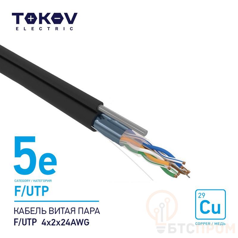 Кабель витая пара F/UTP 4х2х24AWG кат.5E наружный+трос 500м TOKOV ELECTRIC TKE-C05-F/UTP-42-5E-500-ODC