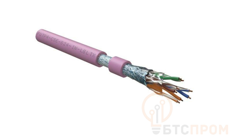 Кабель витая пара F/UTP кат.5E 4 пары 24 AWG ОЖ solid экран-фольга нг(А)-LSLTx внутр. FUTP4-C5E-S24-IN-LSLTx-PK-305 роз. (уп.305м) Hyperline 444609