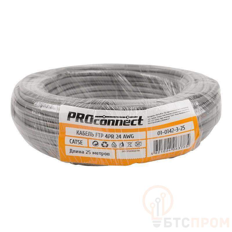 Кабель витая пара F/UTP кат.5e 4х2х0.50 24AWG solid CCA PVC INDOOR омедненный сер. (уп.25м) PROCONNECT 01-0142-3-25
