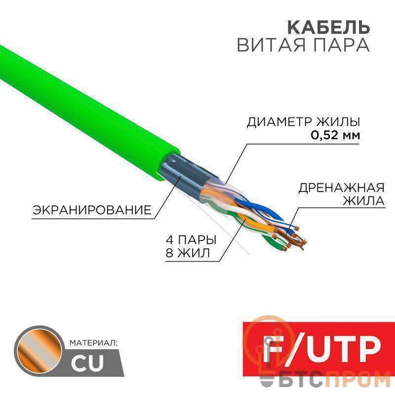Кабель витая пара F/UTP кат.5E 4х2х0.52 24 AWG нг(А)-LSLTx INDOOR SOLID зел. (уп.305м) Rexant 01-0161