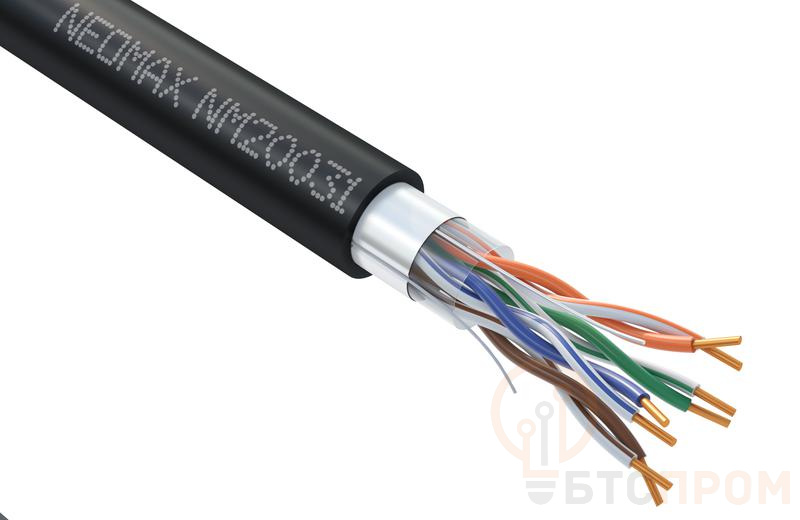 Кабель витая пара NEOMAX категории 5e предназначен для построения надежных проводных сетей в условиях улицы. Конструкция F/UTP (foiled/unshielded twisted pair) с общим экраном из фольги обеспечивает эффективную защиту от внешних электромагнитных помех.