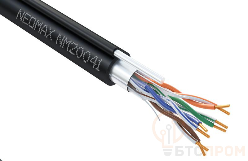 Кабель витая пара F/UTP кат.5E 4х2х24AWG (0.52мм) solid CU PE + ТРОС OUTDOOR черн. (NM20041) (уп.305м) NEOMAX 1207909