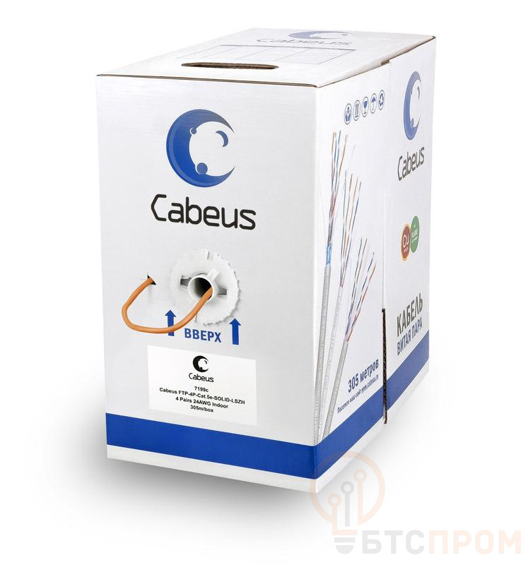Кабель витая пара F/UTP кат.5E 4х2х24AWG solid LSZH нг(А)-HF FTP-4P-Cat.5e-SOLID-LSZH оранж. (уп.305м) Cabeus 7199c