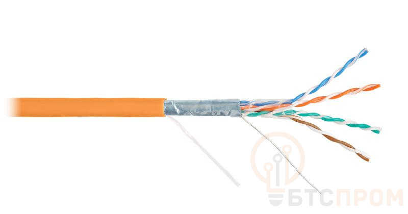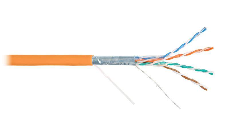Кабель NKL 2200C-OR выполнен в экранированном исполнении F/UTP, соответствует категории 5e и предназначен для внутренней прокладки. Внешняя оболочка изготавливается из неподдерживающего горение LSZH-компаунда, малодымного и не выделяющего ядовитых соединений в процессе горения, исполнение нг(A)-HFLTx.