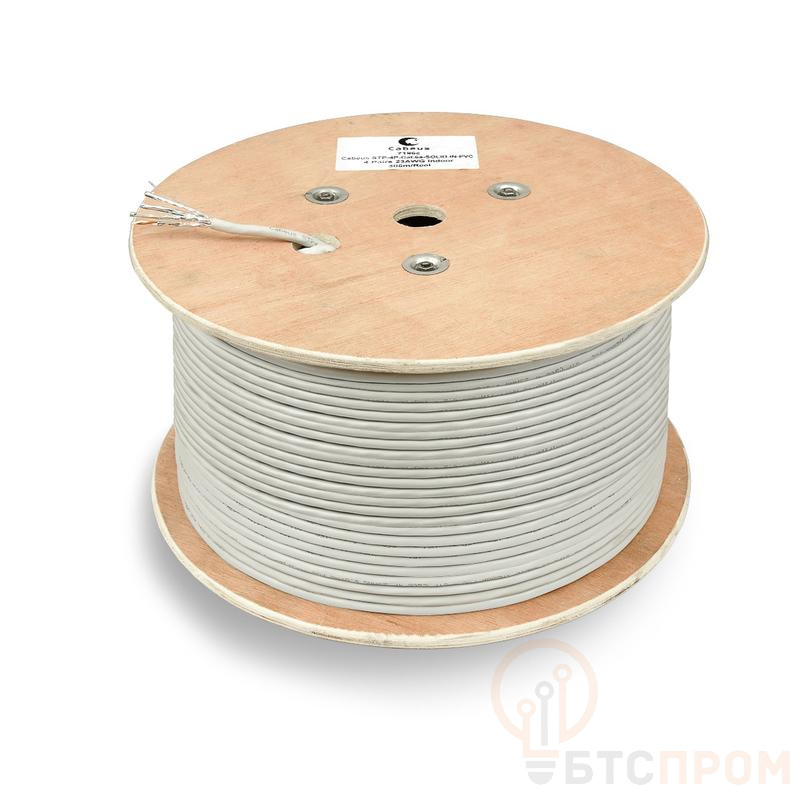 Кабель витая пара U/FTP кат.6A 4х2х23AWG solid PVC нг(А)-LS STP-4P-Cat.6a-SOLID-IN-PVC сер. (уп.305м) Cabeus 7196c