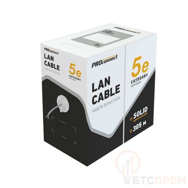 Кабель витая пара U/UTP серого цвета PROconnect имеет широкую область применения. Предназначен для создания локальных сетей общего назначения, домашних сетей, сетей малого бизнеса, компьютерных сетей, сетей передачи данных, узкоспециализированных сетей. Применяется для подключения устройств охранной системы, телефонии, интернета, цифрового телевидения и т.д. Проводник кабеля изготовлен из алюминия, плакированного медью CCA, и покрыт изоляцией из полиэтилена повышенной плотности HDPE (диаметром 0,8 мм). Внешняя изоляция толщиной 0,5 мм выполнена из ПВХ. Неэкранированный кабель предназначен для прокладки внутри зданий. Относится к категории 5: рассчитан на рабочие частоты от 1 до 100 МГц. Высокая скорость передачи данных достигается за счет специального метода обжима кабеля. Обладает гибкой формой, что позволяет прокладывать кабель в труднодоступных местах без образования заломов на местах сгиба.