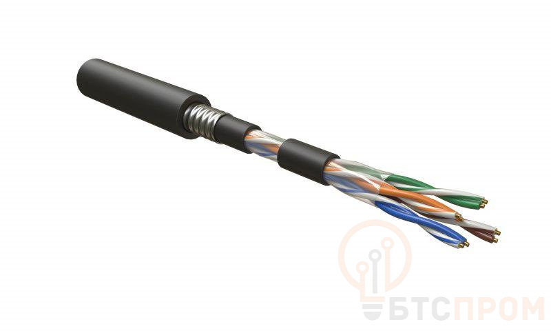 Кабель витая пара U/UTP кат.5E 4 пары 24 AWG ОЖ solid бронир. стальн. лентой внешн. PE UUTP4-C5E-S24-ARM-OUT-PE-BK черн. Hyperline 41657